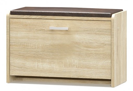 Тумба для обуви с двумя выдвижными ящичками и мягким сиденьем сверху. Изготовлено из ДСП